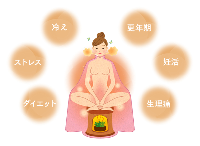エステの森ジュジュでは天然オーガニックの薬草よもぎを煮出してテント内に充満する蒸気を皮膚から毛細血管、鼻から大脳、呼吸器から肺へと成分を体内に取り込み、子宮をはじめとする体内をしっかり温めます。保湿効果もあり、入浴後はスベスベさらさら肌を実感いただけます。